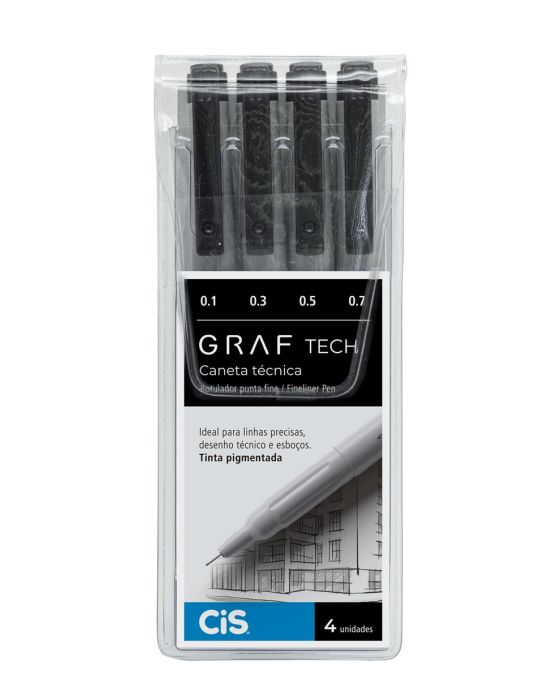 Caracteristicas:Ideal para linhas precisas, desenho técnico e esboços.- Estojo com 4 unidades: pontas 0.1, 0.3, 0.5, 0.7- Caneta Técnica- Tinta pigmentada-Ponteira de metal- Cor da tinta: Preto- Tinta Resistente à Água e luz* As especificações podem ser alteradas sem aviso prévio ** Imagem meramente ilustrativa.