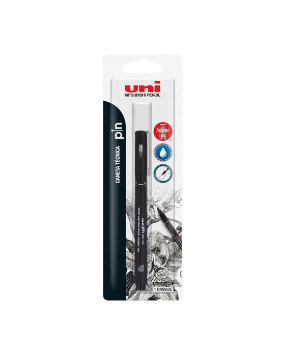 Características:A Caneta Uni Pin Tipo Nanquin é fabricada pela Mitsubishi no Japão, conhecida devido a sua ponta sintética de alta tecnologia o que garante, um melhor fluxo de tinta e maior precisão nos traços. Muito utilizada por Arquitetos, ilustradores, estilistas, tatuadores e demais profissionais que buscam um traço preciso. Sua alta durabilidade usabilidade e rendimento é o que tornam está caneta um sucesso!Detalhes:- Marca: UniPaint Marker;- Modelo: Uni Pin;- Linha: Caneta Técnica;- Tipo: Nanquin;- Cor: Preto;- Traço: 0,1mm;- Ponta: Sintética;- Contém: 1 blister com 1 unidade do produto; - Tinta resistente à água e à luz;- Secagem rápida;- Tinta antifraude;- Ponteira de metal.Ideal para:- Arquitetos, ilustradores, estilistas, tatuadores e todos os profissionais que buscam um traço preciso confiam na Pin, a caneta técnica mais amada por quem testa.Importante: Atenção à forma de utilização.- A caneta deve ser agitada para perfeita homogeneização da tinta;- Após o uso atenção ao fechar a tampa, o que fará com que seu marcador continue eficiente até o final de sua vida útil.* As especificações podem ser alteradas sem aviso prévio ** Imagem meramente ilustrativa.