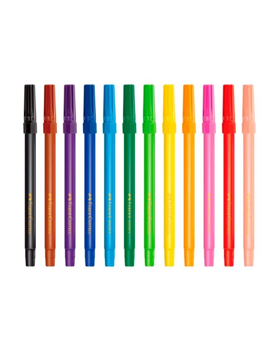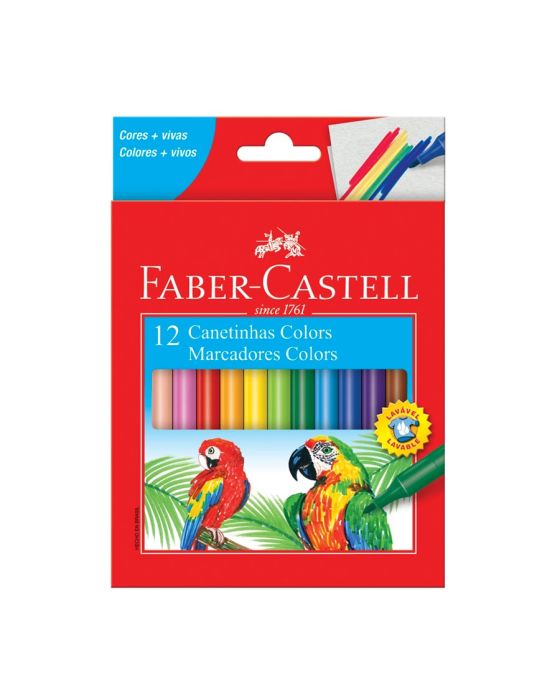Características:Estimule a criatividade e faça a diversão das crianças com as Canetinhas Colors 12 Cores Faber-Castell, com a formulação exclusiva de corantes de alta qualidade com cores mais vivas.Detalhes:- Marca: Faber-Castell.- Modelo: Colors.- Referência: 150112CZF.- Linha: Canetas Hidrogáficas.- Cores: 12 cores.- Contém: 1 estojo com 12 cores.- Ponta média.- Tinta lavável na maioria dos tecidos.- Estojo prático.- Acompanha etiquetas para identificação.- Cores mais vivas.- Grande durabilidade.Importante:- O produto não é removivel de papéis e pintura de parede, superficies plásticas, madeiras e outros materiais os quais não podem ser lavados.ATENÇÃO! PRODUTO NÃO RECOMENDÁVEL PARA CRIANÇAS DE ATÉ 3 (TRÊS) ANOS POR CONTER PARTE(S) QUE PODE(M) SER ENGOLIDA(S) OU ASPIRADA(S).* As especificações podem ser alteradas sem aviso prévio ** Imagem meramente ilustrativa.