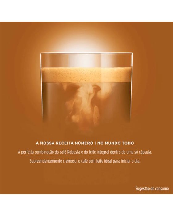 Características:Grãos selecionados de café que se harmonizam perfeitamente com a cremosidade do leite integral, tudo isso em uma cápsula inteligente. Torrefação média e equilíbrio ideal para as suas manhãs e tardes.Detalhes:- Marca: Nescafé® Dolce Gusto®.- Linha: Cápsula.- Sabor: Café Au Lait.- Perfil: Equilibrado e encorpado.- Origem: Brasil.- Contém: 1 caixa com 10 unidades.- Quantidade: cada cápsula contém 10g.- Peso da embalagem: 100g.- Compatibilidade: Máquinas Dolce Gusto® Geração 1.Indústria Brasileira.Cápsulas: - Quantidade de Cápsulas: 10 cápsulas.- Rendimento: 10 porções.- Porção: 10g.Faz:- Cada cápsula faz: 180ml.- Tamanho de xícara: Média.Ingredientes:- Leite em pó Integral, Café Soluvél (24%), Estabilizantes Fosfato Dipotássico e Citratp de Sódio e Emulsificante Lecitina de Soja.Armazenagem:- Manter em local fresco e arejado.Recicle:- Se você tem acesso a coleta seletiva, descarte junto aos materiais recicláveis.- Caso não tenha, encontre o ponto de entrega mais próximo de você: https://www.nescafe-dolcegusto.com.br/sustentabilidadendgALÉRGICOS: CONTÉM DERIVADOS DE LEITE E SOJA. PODE CONTER TRIGO, CEVADA E AVEIA.CONTÉM LACTOSE. CONTÉM GLÚTEN.* As especificações podem ser alteradas sem aviso prévio ** Imagem meramente ilustrativa.