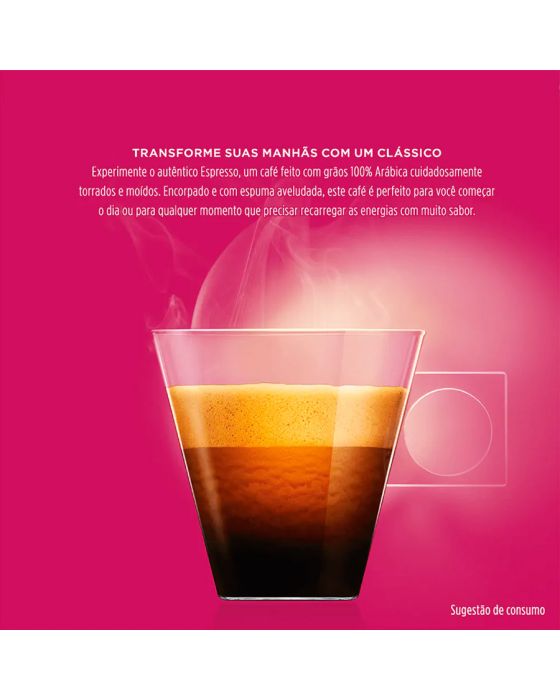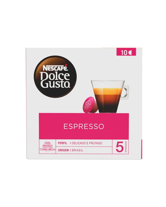 Características:Você vai adorar este Espresso delicado, porém marcante, com sua aveludada espuma e seu toque frutado. Experimente o café arábica premium do Brasil.Detalhes:- Marca: Nescafé® Dolce Gusto®.- Linha: Cápsula.- Sabor: Café Caseiro.- Perfil: Delicado e Frutado.- Origem: Brasil.- Intensidade: 5.- Torra: Média.- Contém: 1 caixa com 10 unidades.- Quantidade: cada cápsula contém 6g.- Peso da embalagem: 60g.- Compatibilidade: Máquinas Dolce Gusto® Geração 1.- Grãos 100% Arábica.Indústria Brasileira.Cápsulas: - Quantidade de Cápsulas: 10 cápsulas.- Rendimento: 10 porções.- Porção: 8g.Faz:- Cada cápsula faz: 50ml.- Tamanho de xícara: Pequena.Ingredientes:- Café Torrado Moído.Armazenagem:- Manter em local fresco e arejado.Recicle:- Se você tem acesso a coleta seletiva, descarte junto aos materiais recicláveis.- Caso não tenha, encontre o ponto de entrega mais próximo de você: https://www.nescafe-dolcegusto.com.br/sustentabilidadendgALÉRGICOS: NÃO CONTÉM GLÚTEN.* As especificações podem ser alteradas sem aviso prévio ** Imagem meramente ilustrativa.