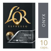 Caracteristicas:O intenso ONYX é uma ode à essência máxima do espresso puro: uma torra intensa de grãos, finamente moídos para desvendar uma combinação profunda e com sabor picante, junto com um esplêndido toque amargo de cacau. - Blend: Onix- Intensidade: 12- Caixa com 10 cápsulas- Marca: L'or - Compatível com as máquinas de café espresso Nespresso- Certificado UTZDescubra a sofisticação dos cafés em cápsulas L'OR e se envolva no equilíbrio de sabores suaves e intensos. Conheça também os outros Blends de L'os e surpreenda-se.* As especificações podem ser alteradas sem aviso prévio ** Imagem meramente ilustrativa.