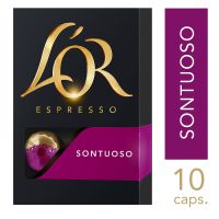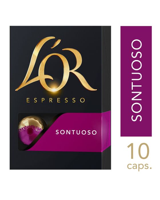 Caracteristicas:O delicado SONTUOSO é um espresso clássico com notas de amêndoas torradas e um toque floral inspirador, finalizado com o brilho âmbar de uma saborosa e sedosa camada de crema.Intensidade 08. Descubra a sofisticação dos cafés em cápsulas L'OR e se envolva no equilíbrio de sabores suaves e intensos.Intensidade: 8Melhor servido como Espresso (40ml)Certificado UTZCápsulas de café L’OR, compatíveis com máquinas de café Nespresso ®*. Conheça!* As especificações podem ser alteradas sem aviso prévio ** Imagem meramente ilustrativa.