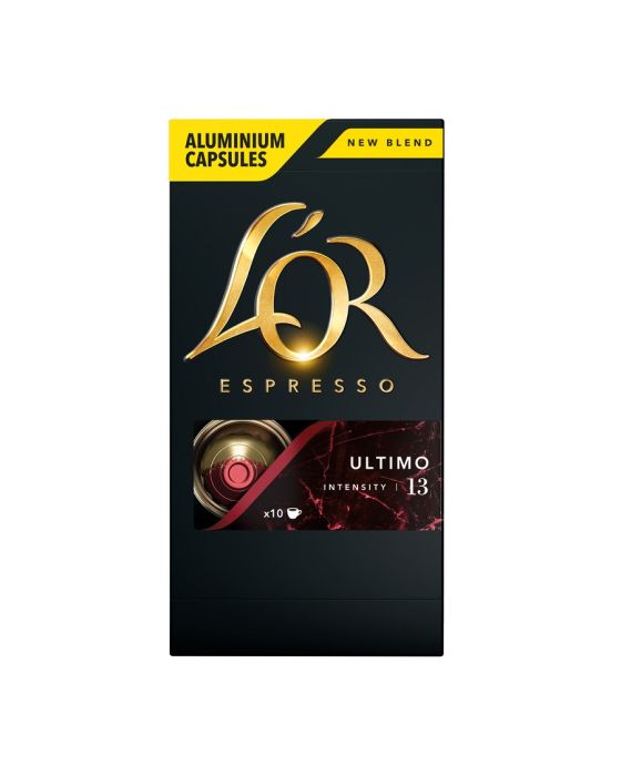 Caracteristicas:Desfrute de uma experiência encorpada no primeiro gole, seguida de um final de boca longo e intenso com café torrado e notas de chocolate.A L'OR Coffee Artists misturou grãos de Arábica de alta qualidade para fornecer um espresso torrado escuro e intenso e pronunciado.Um bouquet vivo de sabor e sabor que revela complexas notas de cacau torrado e escuro.Deixe-se cativar pelo lado mais suave do Intensity 13 com L'OR Espresso Ultimo.- Caixa com 10 cápsulas- Marca: L'or - Compatível com as máquinas de café espresso Nespresso- Certificado UTZDescubra a sofisticação dos cafés em cápsulas L'OR e se envolva no equilíbrio de sabores suaves e intensos. Conheça também os outros Blends de L'os e surpreenda-se.* As especificações podem ser alteradas sem aviso prévio ** Imagem meramente ilustrativa.