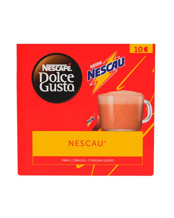 Características:O achocolatado mais famoso do Brasil em uma só cápsula. O delicioso NESCAU® que você já conhece, prático e nutritivo para o café da manhã de toda a família!Sabor da energia!Detalhes:- Marca: Nescafé® Dolce Gusto®.- Linha: Cápsula.- Sabor: Nescau®.- Perfil: Cremoso.- Origem: Brasil.- Contém: 1 caixa com 10 unidades.- Quantidade: cada cápsula contém 17g.- Peso da embalagem: 170g.- Compatibilidade: Máquinas Dolce Gusto® Geração 1.Indústria Brasileira.Faz:- Cada cápsula faz: 120ml.- Tamanho de xícara: Média.Ingredientes:- Leite em pó integral, Açúcar, Soro de leite, Cacau, Sal, Triglicerídeos de cadeia média (TCM), Aromatizantes e Emulsificante lecitina de soja.Armazenagem:- Manter em local fresco e arejado.Recicle:- Se você tem acesso a coleta seletiva, descarte junto aos materiais recicláveis.- Caso não tenha, encontre o ponto de entrega mais próximo de você: https://www.nescafe-dolcegusto.com.br/sustentabilidadendgALÉRGICOS: CONTÉM DERIVADOS DE LEITE E SOJA. PODE CONTER TRIGO, CEVADA E AVEIA.CONTÉM LACTOSE. CONTÉM GLÚTEN.* As especificações podem ser alteradas sem aviso prévio ** Imagem meramente ilustrativa.