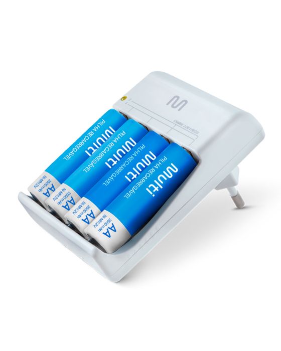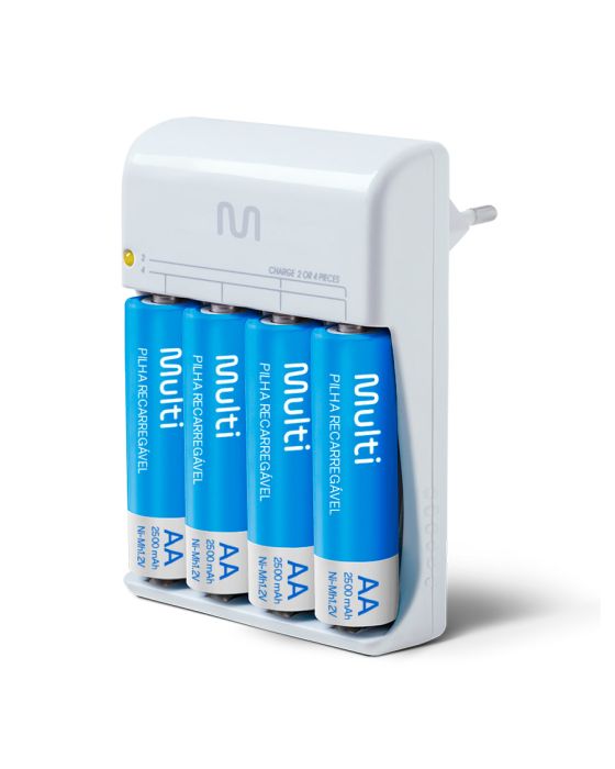 Características:Portátil e bivolt, o Carregador dá Multi é próprio para pilhas recarregáveis formato AA e AAA, economize tempo, com ele você pode recarregar até quatro pilhas de cada formato de uma só vez. Detalhes:- Marca: Multi;- Referência: CB054;- Linha: Liquidificadores;- Voltagem: Bivolt;- Cor: Cinza;- Contém: 1 unidade do produto;- Capacidade: 4 Pilhas AA simultaneamentel;- Recarrega de 2 a 4 pilhas AA ou AAA tipo Ni-MH ou Ci-CD.Ideal para: - Ideal para viagens e eventos onde você não pode se preocupar em gastar pilha.Energia: - Voltagem/Tensão: Bivolt.Recarga:- 10 horas para pilhas AA 2500mAh;- E apenas 4.5 horas para as AAA 900mAh.Medidas:- Dimensões do produto: 6,5 x 9 x 18,8cm (AxLxC);- Peso do produto: 150g.Conteúdo da embalagem: 1 Carregador de pilhas, 4 Pilhas AA, 1 Guia rápido.Garantia do fornecedor: 12 meses contra defeitos de fabricação.* As especificações podem ser alteradas sem aviso prévio ** Imagem meramente ilustrativa