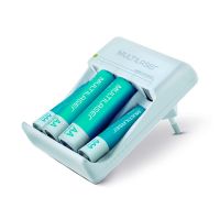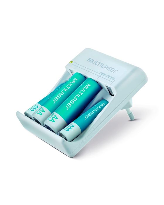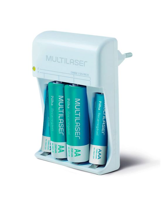 Caracteristica:- Compacto, leve e fácil de usar- Em acordo com o novo padrão brasileiro de tomadas- Tempo de recarga: 12 horas- Carrega 2 ou 4 pilhas AA ou AAA ao mesmo tempo- Bivolt- Ideal para uso com câmeras digitais, MP3 players, brinquedos, etc.- Conecta diretamente a tomada de energia elétrica, sem uso de cabos- Acompanha 2 pilhas AA 2500mAH e 2 pilhas AAA 1000mAh- Peso: 135g- Dimensões: 83 x 59 x 55mm- Garantia: 3 meses de garantia* As especificações podem ser alteradas sem aviso prévio ** Imagem meramente ilustrativa