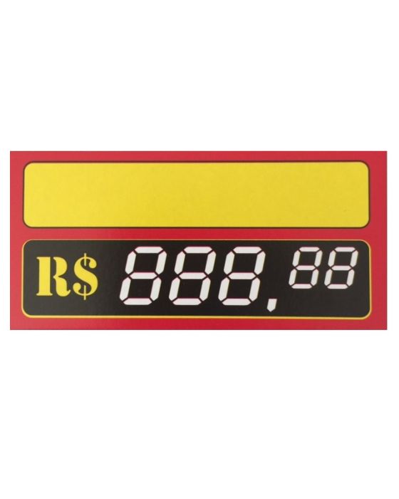 Caracteristicas:- Chame a atenção para o seu produto!!- Papel duplex 250 g/m2- Formato: 8,5 x 5,5cm- Caixa de preço formato digital de 5 dítigos para pintar- Cor predominante: amarelo com bordas em vermelho* As especificações podem ser alteradas sem aviso prévio ** Imagem meramente ilustrativa