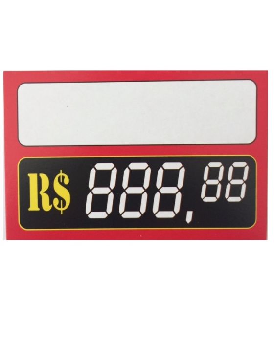 Caracteristicas:- Chame a atenção para o seu produto!!- Papel duplex 250 g/m2- Formato: 8,5 x 5,5cm- Caixa de preço formato digital de 5 dítigos para pintar- Cor predominante: branca com bordas em vermelho* As especificações podem ser alteradas sem aviso prévio ** Imagem meramente ilustrativa