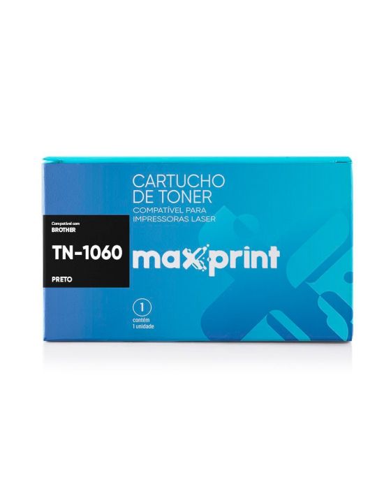 Características:Tenha a qualidade para fazer a impressão dos seus documentos em impressoras com o Cartucho de Toner Maxprint Preto!Detalhes:- Marca: Maxprint;- Modelo: Brother TN1060;- Linha: Toner Compatível;- Cor: Preto;- Contém: 1 unidade do produto;- Rendimento: 1.000*;- N° Toner: TN1060;- Conteúdo dentro embalagem: Manual;- Formato: Caixa unitária.Validade: Vide embalagemCompatibilidade:Brother:- BROTHER HL1110 | HL1111 | HL1112R | HL1202 | DCP1512 | MFC1810 | MFC1811 | MFC1810R | MFC1815 | MFC1815R.Composição:- Matéria prima importada: Cartucho plástico, Resina acrílica, Magnetita, Sílica e Corante.* Rendimento médio estimado do cartucho de toner Maxprint é baseado na Norma ABNT/ISO IEC 19752/19798. O rendimento poderá variar conforme o conteúdo e o tipo de impressão. Folha tamanho A4 com 5% de cobertura.Garantia do fornecedor: 2 anos.Para maiores informações, consulte o manual do fabricante de sua impressora. As marcas citados são propriedades de seus fabricantes.* As especificações podem ser alteradas sem aviso prévio ** Imagem meramente ilustrativa.
