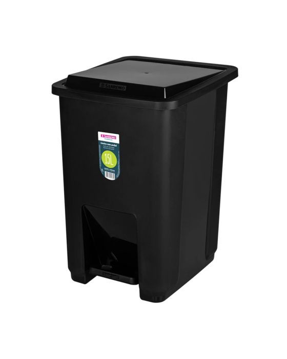 Cesto De Lixo 15l Plastico Preto C/ Pedal Sr2215/20 Sanremo