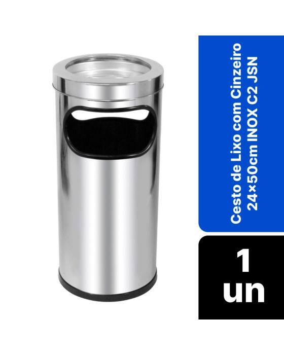 Características:Com o Cesto de lixo com Cinzeiro Inox C2 JSN, você terá 2 produtos em um só, sendo ideal para pequenos escritórios, grandes empresas, ambientes empresariais e comerciais. Detalhes:- Marca: JSN;- Modelo: Cinzeiro Lixeira;- Referência: C2;- Linha: Lixeiros;- Cor: Inox/Preto;- Capacidade: 22 Litros;- Contém: 1 unidade do produto;- Furos laterais para jogar lixo e cinzeiro na parte superior da lixeira;- Possui a borda superior e inferior enrolada para melhor manipulação.Composição:- Fabricado em Aço Inox 430 e plástico ABS.Medidas:- Dimensões do produto: 24,3 x 24,3 x 52cm (CxLxA);- Dimensões da embalagem: 25 x 25 x 54,5cm (CxLxA);- Peso: 2,13kg.*Não recomendado o uso para descarte de resíduos líquidos.* As especificações podem ser alteradas sem aviso prévio ** Imagem meramente ilustrativa.