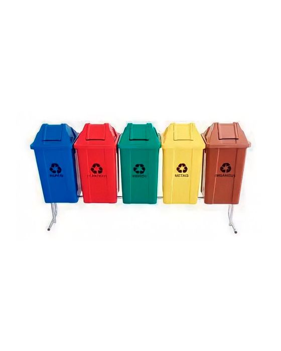 Cesto De Lixo Kit Coleta Seletiva 5 Cestos De 60l E Suporte Jsn St17m
