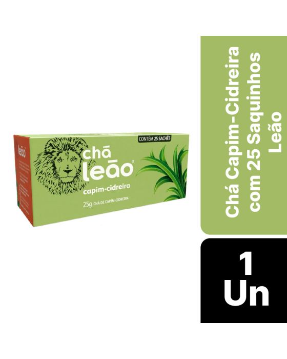 Características:A família de Ervas que todo mundo conhece com a qualidade de Leão, marca líder do segmento de chás, sinônimo de tradição e qualidade com mais de 120 anos de experiência.Inspire, Expire, Aprecie...#FicaDeBoaDetalhes:- Marca: Leão;- Linha: Chás;- Sabor: Capim-Cidreira;- Peso: 25g;- Quantidade de sachês: 25 sachês;- Sachês: 2,0g cada envelope;- Contém: 1 caixa com 25 unidades do produto;- Não possui sódio, cafeína e mate;- Os chás não possuem quantidade significativa de valor energético, proteínas, gorduras totais, gorduras saturadas, gorduras trans, fibra alimentar e sódio.- Não embalados individualmente.Indústria Brasileira. | Validade: Aproximadamente 17 meses após a data de fabricação.Ideal para:- Ideal para o café da manhã, tarde, ou intervalos, pode ser usado em refeitórios corporativos, restaurantes de hotéis, escolas, hospitais e clínicas.Modo de preparo:- Despeje água quente (a 90ºC) em uma xícara de 240ml;- Coloque o sachê e deixe em infusão em 5 minutos;- Adoce se preferir;- Após o preparo, consumir imediatamente.Armazenamento:- Conservar ao abrigo do Sol e Calor em local limpo, seco, arejado e sem odor.Importante!- Utilize água filtrada;- Consumir imediatamente após preparo ou guardar por no máximo 8 horas em recipiente limpo e sob refrigeração;- Usar a quantidade indicada de água é importante para garantir uma melhor experiência.Ingredientes:- Folhas de Capim Cidreira (Cymbopogon citratus Stapf).Medidas:- Dimensões da embalagem: 13,2 x 5 x 5,8cm (CxLxA);- Peso: 44g.ALÉRGICOS: NÃO CONTÉM GLUTÉN.ATENÇÃO! MANTENHA FORA DO ALCANCE DE CRIANÇAS E DOS ANIMAIS DOMÉSTICOS.* As especificações podem ser alteradas sem aviso prévio ** Imagem meramente ilustrativa.?
