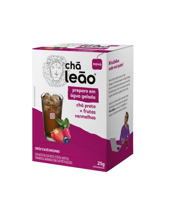 Características:A combinação perfeita entre o sabor marcante do chá preto e o delicioso frescor das frutas vermelhas, especialmente para servir gelado. Que tal experimentar essa novidade?Ideal para aqueles que buscam saúde e qualidade de vida, o novo chá verde de limão e gengibretraz os benefícios que vão muito além de um simples aroma natural, especialmente para ser servido gelado. Dê um gelo na mesmice, viva essa nova experiência! - Marca: Leão - Embalagem com 10 saches envelopados - Peso Caixa: 25g - Sabor: Chá Preto e Frutas Vermelhas - Ingredientes: Folhas e talos de chá preto, folhas de estévia, extrato aquoso solúvel de folhas e talos de chá preto, frutos de mirtilo, frutos de framboesa, frutos de morango e aromatizantes.* As especificações podem ser alteradas sem aviso prévio** Imagem meramente ilustrativa.
