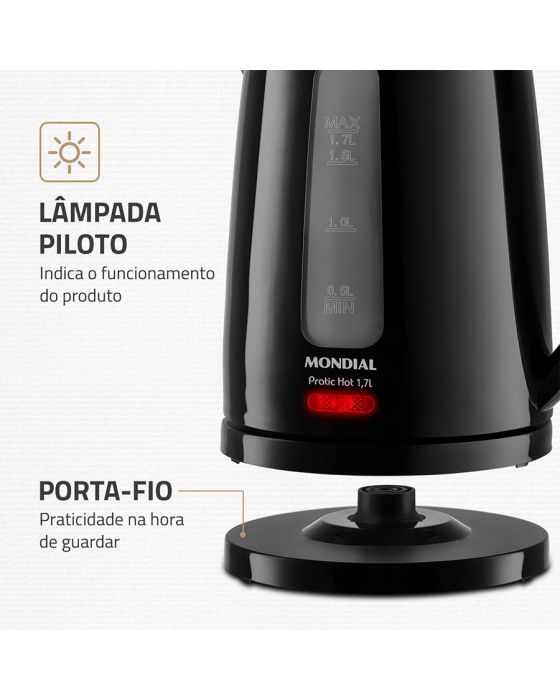 Chaleira Eletrica Pratic Hot 1,7l Ce-17 Preto 220v Mondial