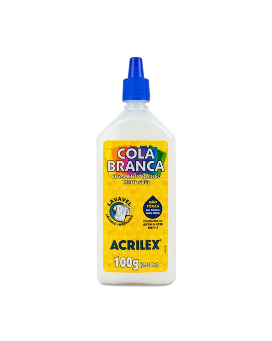 Caracteristicas:Solte a sua imaginação e faça colagens e demais trabalhos com a Cola Branca Acrilex!Detalhes:- Marca: Acrilex.- Modelo: 02810.- Linha: Cola Branca.- Cor: Bramca.- Volume/Peso: 100g.- Contém: 1 unidade do produto.- Produto lavável.- Não tóxico.- Possui um exclusivo bico aplicador que facilita a aplicação, além de ser mais econômica.Ideal para:- Para colagens de papel, papel cartão e cartolina. Composição:- Resina de P.V.A.ATENÇÃO! PRODUTO NÃO RECOMENDAVÉL PARA CRIANÇAS DE ATÉ 3(TRÊS) ANO(S) POR CONTER PARTE(S) PEQUENA(S) QUE PODE(M) SER ENGOLIDA(S) OU ASPIRADA(S).* As especificações podem ser alteradas sem aviso prévio ** Imagem meramente ilustrativa.