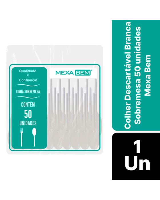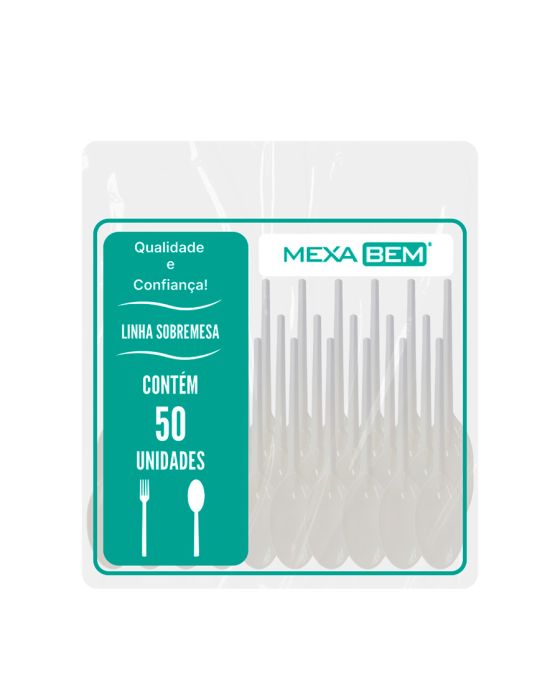 Colher Descartavel Branca Sobremesa C/50 Mexa Bem