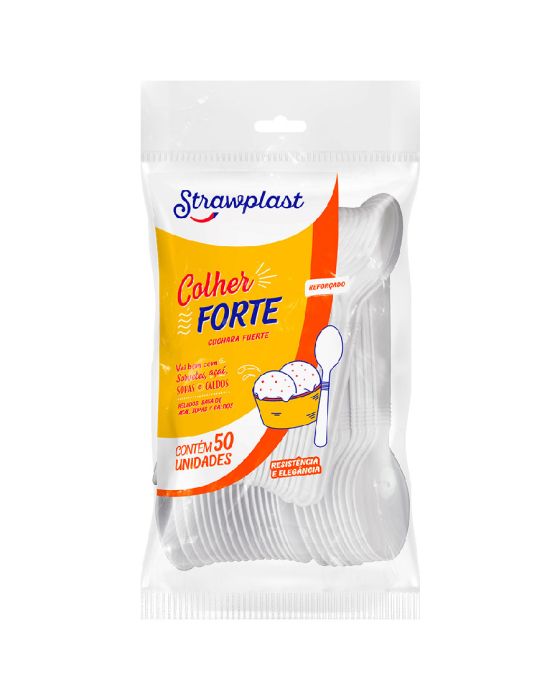 Colher Descartavel Forte Branca C/ 50 Strawplast Csb-606