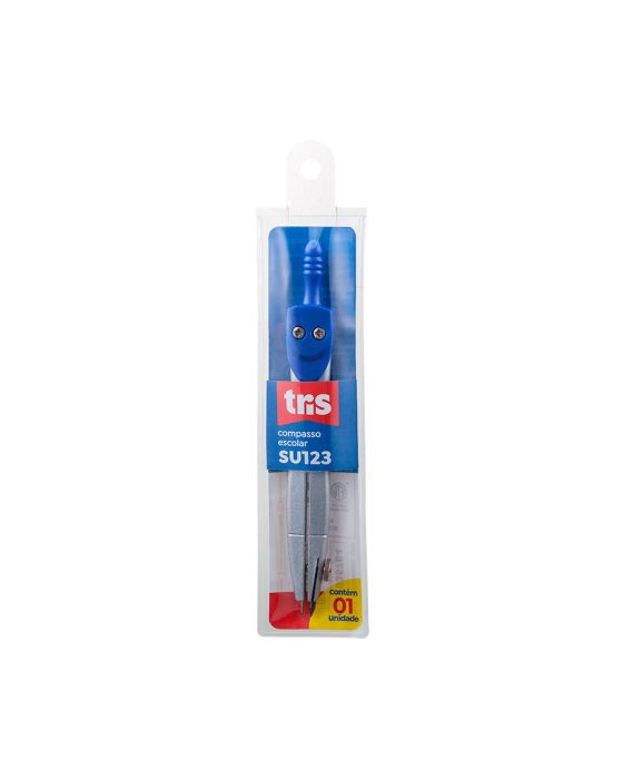 Características:O Compasso Escolar SU123 Tris é ótimo para primeiros exercícios escolares! O compasso SU-123 possui corpo metálico e círculo máximo de aproximadamente 30cm de diâmetro.Detalhes:- Marca: Tris;- Modelo: SU123;- Linha: Compassos;- Cor: Azul;- Contém: 1 unidade do produto;- Cículo máximo de 30cm de diâmetro;- Prático e resistente.Composição: - Fabricado em resina termoplástica e partes metálicas.Medidas:- Dimensões do produto: 1,2 x 3 x 14cm (AxLxC).* As especificações podem ser alteradas sem aviso prévio ** Imagem meramente ilustrativa