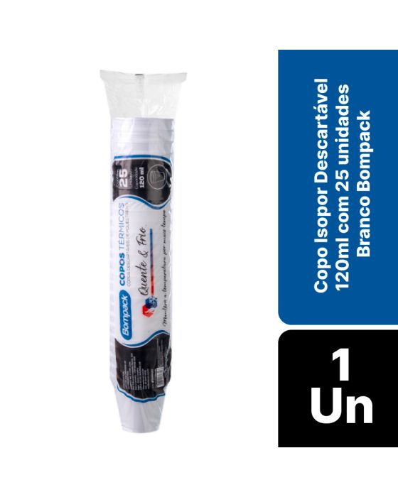 Copo Isopor Descartavel 120ml C/25 Branco Bompack