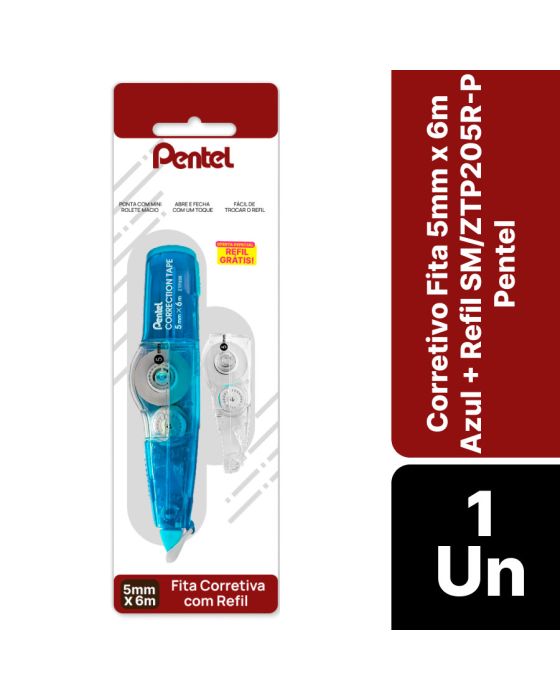 Corretivo Fita 5mm X 6m Azul + Refil Sm/ztp205r-s Bls C/1 Pentel