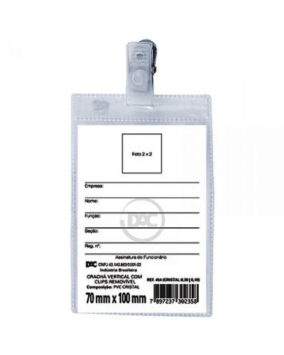 Cracha Com Prendedor 7 X 10cm Vertical C/10un Dac 454