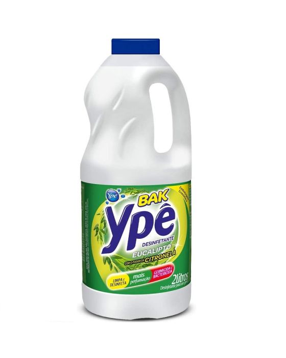 Caracteristicas:A Ypê possui uma linha completa de produtos de cuidados para a casa. Entre eles, a linha de Desinfetantes BAK Ypê. Além da ação de limpeza e desinfecção, traz muito mais perfumação.BAK Ypê é seu melhor aliado para manter a casa limpa, desinfetada e perfumada por mais tempo. Isso porque tem poder germicida e bactericida que mata germes e bactérias. E podem ser utilizados em todos os ambientes da casa, como sala, quartos, banheiros, áreas externas, etc.Experimente os desinfetantes BAK Ypê. Muito mais perfumação e cuidado para sua casa.Você sente e vê quando a casa tem YPÊ.- Limpa e desinfeta- Mais perfumação- Germicida e Bactericida- Fragrância: Eucalipto com o poder da CITRONELA*- Quantidade: 2 Litros*A citronela é conhecida na aromaterapia por seu potencial de repelência, poder bactericida e ação calmante. Estes são benefícios funcionais amplamente divulgados dessa fragrância. Lembramos que Desinfetante Bak Ypê deve ser utilizado apenas para a que se destina o produto. * As especificações podem ser alteradas sem aviso prévio ** Imagem meramente ilustrativa