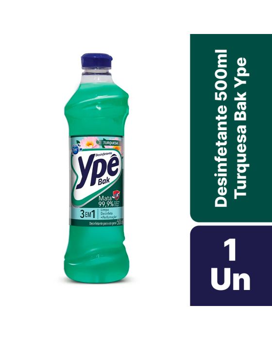 Características:A linha de desinfetantes Ypê BAK foi desenvolvida para manter a sua casa inteira limpa, segura, desinfetada e perfumada por muito mais tempo!Detalhes:- Marca: Ype;- Modelo: Bak;- Linha: Desinfetante;- Volume: 500ml;- Contém: 1 unidade do produto;- Mata 99,9% dos germes, bactérias e fungos;- 3 em 1: Limpa, desinfeta e perfuma;- Água pode faltar, não desperdice.Indústria Brasileira. | Validade: 24 meses após a data de fabricação.Modo de uso:- Para desinfecção: Para desinfecção de vasos sanitários, ralos, pias e etc, aplique o BAK YPE puro e deixe agir por 10 minutos;- Para limpeza geral: Para limpeza geral de pisos, paredes, mármores, assoalhos, etc, dilua 2 colheres sopa (30ml) por litro de água.Recomendações:- O produto deve estar totalmente dissolvido antes de iniciar a lavagem. Não deve ser misturado com outros produtos a base de cloro;- Este produto não é adequado para lavar lã, seda, couro e algodão cru.- Seque suas roupas em local arejado;- Tempo de molho ideal: Até 2 horas.Armazenamento:- Mantenha a embalagem do produto fechada em local seco e fresco;- Mantenha a embalagem em sua embalagem original;- Não reutilize a embalagem para outros fins.Composição:- Cloreto de Aquil Dimetil, Benzil Amônio, Cloreto de Didecil Dimetilamônia, Fragrância, Opacificante, Sequestrante, Conservante, Emulsificante, Corantes, Acidulante e Água.Medidas:- Dimensões do produto: 6,5 x 6,5 x 22cm (CxLxA);- Peso: 645g.ATENÇÃO! MANTENHA FORA DO ALCANCE DE CRIANÇAS E DOS ANIMAIS DOMÉSTICOS.* As especificações podem ser alteradas sem aviso prévio ** Imagem meramente ilustrativa.