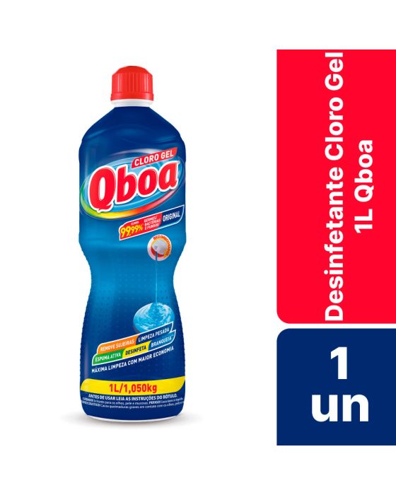 Características:Isso é que eu chamo de eficiência! O novo Cloro Gel Qboa elimina 99,99% dos germes, bactérias, fungos e o novo vírus. Sua poderosa fórmula com cloro ativo limpa e desinfeta profundamente, garantindo proteção para a sua casa e saúde para a família. A diferença do gel é que ele permanece por mais tempo nas superfícies, criando uma camada de ação prolongada. E tudo com aquele cheirinho super de limpeza! A embalagem do novo Cloro Gel Qboa tem bico direcionador para o seu total controle na hora da aplicação, além da economia, pois evita o derramamento.Detalhes:- Marca: Qboa;- Modelo: Clor Gel;- Linha: Desinfetantes;- Volume: 1 Litro;- Contém: 1 unidade do produto;- Mata 99,99% dos germes, das bactérias, dos fungos e do novo vírus;- Poder do cloro ativo;- Bico direcionador;- Fórmula em gel;- Remove Sujeiras;- Limpeza Pesada;- Espuma Ativa;- Desinfeta;- Branqueia.Onde usar:- Recomendamos que seja usado em pisos, azulejos, ralos, bancadas, pias, vasos sanitários e várias outras superfícies, garantindo a proteção da sua casa.* As especificações podem ser alteradas sem aviso prévio** Imagem meramente ilustrativa.