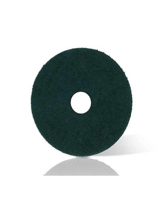 Caracteristicas:- Scotch-Brite™ Disco Verde Limpador 350mm para Tratamento de Pisos- O Disco Verde Limpador Scotch-Brite™ é indicado para remoção de camadas superficiais e sujeiras impregnadas na superfície do acabamento de pisos em geral, sem danificar camadas inferiores. É usado em enceradeiras ou limpadoras automáticas de baixa rotação (175 - 300 rpm).- O Disco Verde Limpador Scotch-Brite™ é utilizado em conjunto com um produto químico neutro para remoção parcial das primeiras camadas de acabamento que apresentam riscos profundos, manchas, marcas e outras sujidades impregnadas no piso. Também é usado no procedimento de lavagem semanal do acabamento.- Modo de usar: remova toda a sujeira do piso com mop antes da remoção parcial. Utilize o aviso de piso escorregadio. Aplique o Produto Químico Neutro Scotch-Brite™ para Limpeza diretamente no piso com a auxílio de um mop úmido ou adicione-o no tanque da limpadora automática. Utilize a enceradeira de baixa rotação equipada com o Disco Fixador Insta-lok Scotch-Brite™ em conjunto com o Disco Verde Limpador Scotch-Brite™ para remover parcial ou para lavagem das camadas de acabamento do piso. Passe a lavadora automática ou enceradeira de baixa rotação em todo o piso. Remova toda solução remanescente no piso (sujeiras e produto limpador neutro) com um mop ou aspirador de líquidos. Espere o piso secar antes de aplicar um acabamento novo.- Performance constante durante a vida útil: possui minerais abrasivos em toda a sua estrutura.- Equipamento compatível: enceradeira de baixa rotação ou lavadora automática.- Remoção total de várias camadas de acabamento.- Também é usado no procedimento de lavagem semanal do acabamento.- Tipo de Piso: Cimento Polido, Concreto, Granilite, Granitos, Mármores, Marmorite, Pedras, Pisos de Madeira- Medidas: 35 x 35 x 3cmConheça a Diferença das cores dos DiscosDISCO POLIDOR/LUSTRADOR: BRANCODISCO REMOVEDOR - PRETODISCO LIMPADOR - VERDEDISCO PREPARADOR - MARROM* As especificações podem ser alteradas sem aviso prévio ** Imagem meramente ilustrativa