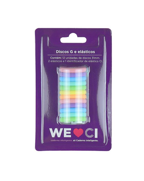 Características:Mude as cores dos discos e do elástico do seu Caderno Inteligente®, deixando-o sempre com cara de novo! ;)Detalhes:- Marca: Caderno Inteligente;- Modelo: Diversidade Brasileira;- Referência: CI312002;- Linha: Discos G;- Cor: Colorido (12 cores);- Contém: 1 embalagem com 12 unidade do produto, 1 elástico e 1 Pin;- Compatível com todos os produtos e acessórios Caderno inteligente;- Tamanho dos discos: 31mm (3,1cm);- Fácil de colocar e retirar;- Produto atóxico;- Produto original.Indústria brasileira. | Validade: Indeterminada.Modo de troca dos discos:- Retire os discos que acompanham o Caderno Inteligente;- Coloque os novos discos da sua preferência no seu Caderno Inteligente;- Encaixe as folhas novamente;- Está pronto para arrasar.Acompanha:- 12 discos na cor coloridos;- 2 elásticos na cor verde água;- 1 identificador de elástico CI na cor branca.Composição:- Fabricado em ABS, poliéster, elastano e Látex.Medidas:- Dimensões do da embalagem: 14,5 x 9,1 x 3,5cm (CxLxA);- Peso: 149g.* Por se tratar de um produto artesanal, a tonalidade pode variar.ATENÇÃO! NÃO RECOMENDÁVEL PARA CRIANÇAS DE ATÉ 3 (TRÊS) ANOS POR CONTER PARTE(S) PEQUENA(S) QUE PODEM SER ENGOLIDA(S) OU ASPIRADA(S). * As especificações podem ser alteradas sem aviso prévio ** Imagem meramente ilustrativa.