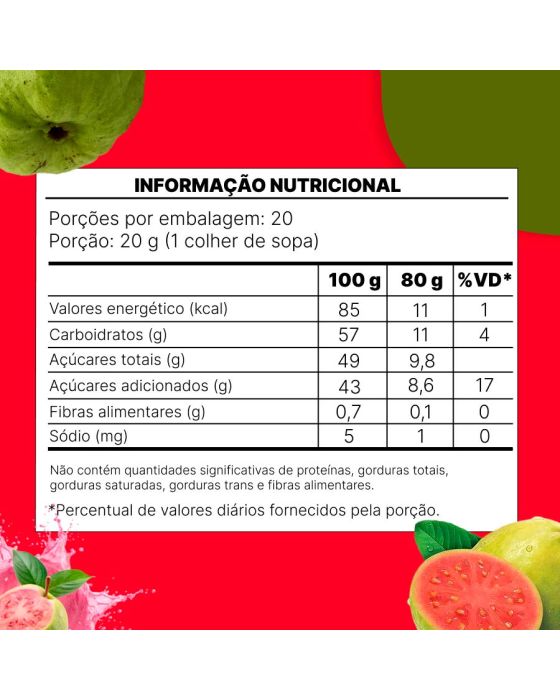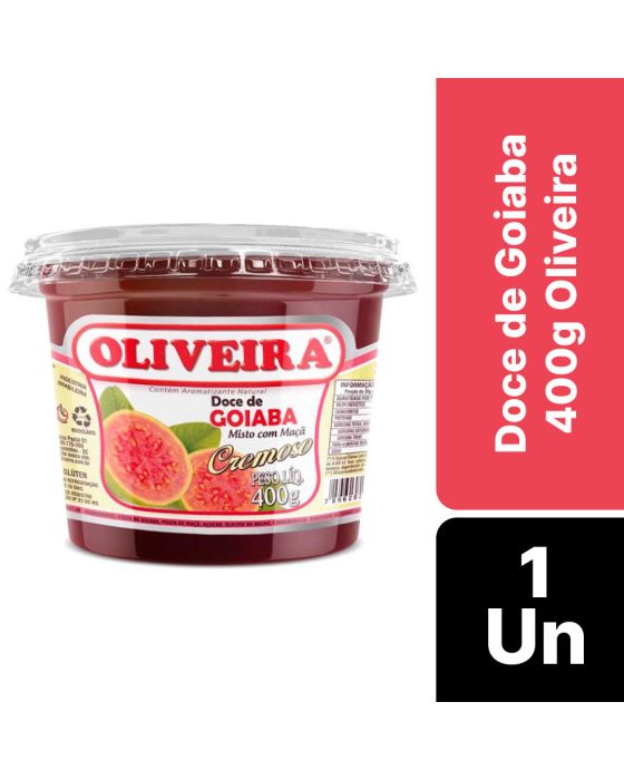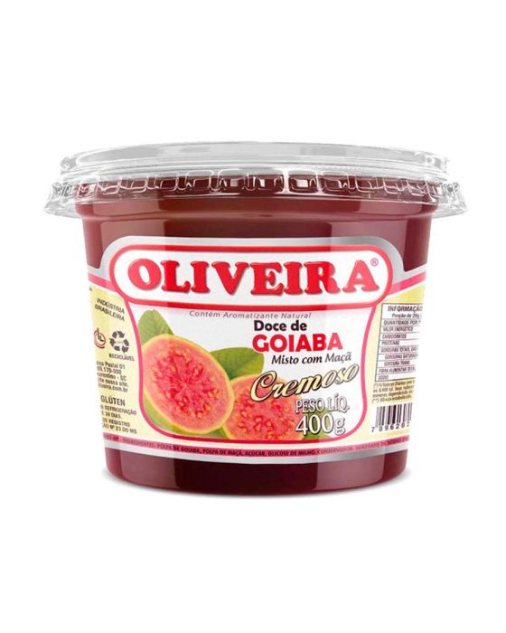 Características:O Café da manhã ou da trade, ou até mesmo aquele lanche no intervalo do trabalho ficará ainda mais saboroso com o Doce de Goiaba Oliveira, desfrute do sabor púnico e marcante, feito com frutas frescas e selecionadas, que proporcionam uma experiência de sabor autêntica e memorável.Detalhes:- Marca: Oliveira;- Linha: Doces;- Tipo: Pote;- Sabor: Goiaba;- Peso: 400g;- Contém: 1 unidade do produto;- Tradição regional;- Frutas selecionadas;- Menos açúcar, mais sabor;- Com misto de maça;- Tradicional doce da região sul.Indústria Brasileira. | Validade: 12 meses após a data de fabricação impressa na embalagem;Ideal para:- Ideal para refeitórios, copas, e ambientes corporativos que servem café da manhã, café da tarde e lanche aos colaboradores, além de ser um item para cestas presenteáveis.Ingredientes:- Polpa de goiaba, Polpa de maçã, Açúcar, Glicose de milho geneticamente modificado (espécies doadoras: Agrobacterium tumefaciens, Bacillus thuringiensis, Sphingobium herbicidoravans, Streptpmyces viridochromogenes e Zea mays), Conservador: Benzoato INS 211, Acidulante: ácido fosfórico INS 338 e Aromatizante natural de Goiaba.Conservação:- Manter em local seco, arejado e inodoro;- Após aberto, manter sob refrigeração e consumir em até 30 dias.Medidas:- Dimensões do produto: 10,5 x 10,5 x 8,2cm (CxLxA);- Peso: 400g.ALÉRGICOS: NÃO CONTÉM GLÚTEN.* As especificações podem ser alteradas sem aviso prévio ** Imagem meramente ilustrativa.