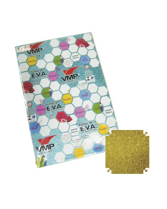 Caracteristicas:O EVA é um material muito usado no meio artesanal em virtude de suas características apropriadas para criação. Basicamente é um emborrachado que permite dobraduras, colagens e pinturas, e se mostra um material bem simples de usar. EVA, em português, é a sigla de 'Espuma Vinílica Acetinada', sigla escolhida para coincidir com a do nome técnico de sua matéria-prima, 'Ethylene Vinyl Acetate'. É um material termoplástico, uma espuma sintética de custo acessível muito usada para produtos infantis e material escolar.- Folha E.V.A com glitter - Tamanho: 40 x 60 cm - Espessura: 2 mm - Marca: VMP- Quantidade: 5 folhas/pacoteE.V.A é um material bastante flexível, apropriado para diversas finalidades, permite a utilização de trabalhos com colagem, costura, pintura, corte, modelagem e onde sua imaginação mandar. * As especificações podem ser alteradas sem aviso prévio ** Imagem meramente ilustrativa
