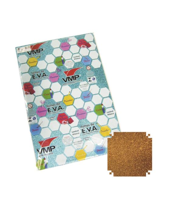 Caracteristicas:O EVA é um material muito usado no meio artesanal em virtude de suas características apropriadas para criação. Basicamente é um emborrachado que permite dobraduras, colagens e pinturas, e se mostra um material bem simples de usar. EVA, em português, é a sigla de 'Espuma Vinílica Acetinada', sigla escolhida para coincidir com a do nome técnico de sua matéria-prima, 'Ethylene Vinyl Acetate'. É um material termoplástico, uma espuma sintética de custo acessível muito usada para produtos infantis e material escolar.- Folha E.V.A com glitter - Tamanho: 40 x 60 cm - Espessura: 2 mm - Marca: VMP- Quantidade: 5 folhas/pacoteE.V.A é um material bastante flexível, apropriado para diversas finalidades, permite a utilização de trabalhos com colagem, costura, pintura, corte, modelagem e onde sua imaginação mandar. * As especificações podem ser alteradas sem aviso prévio ** Imagem meramente ilustrativa