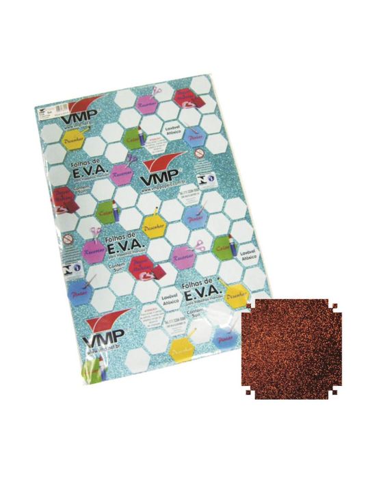 Caracteristicas:O EVA é um material muito usado no meio artesanal em virtude de suas características apropriadas para criação. Basicamente é um emborrachado que permite dobraduras, colagens e pinturas, e se mostra um material bem simples de usar. EVA, em português, é a sigla de 'Espuma Vinílica Acetinada', sigla escolhida para coincidir com a do nome técnico de sua matéria-prima, 'Ethylene Vinyl Acetate'. É um material termoplástico, uma espuma sintética de custo acessível muito usada para produtos infantis e material escolar.- Folha E.V.A com glitter - Tamanho: 40 x 60 cm - Espessura: 2 mm - Marca: VMP- Quantidade: 5 folhas/pacoteE.V.A é um material bastante flexível, apropriado para diversas finalidades, permite a utilização de trabalhos com colagem, costura, pintura, corte, modelagem e onde sua imaginação mandar. * As especificações podem ser alteradas sem aviso prévio ** Imagem meramente ilustrativa
