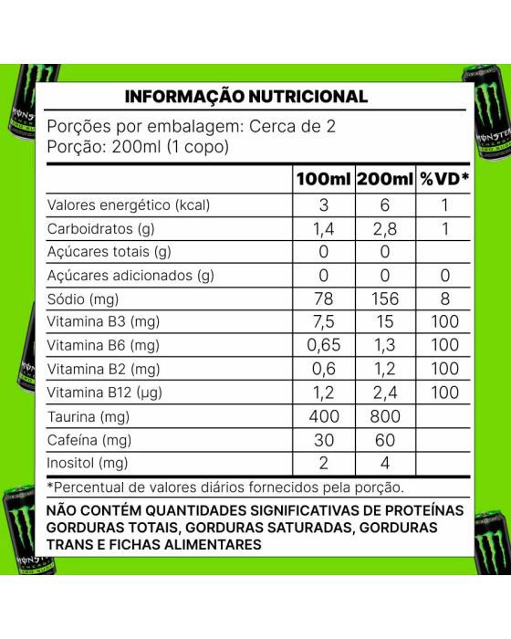 Energetico Monster Green S/ Acucar 473ml