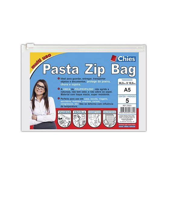 Envelope Plastico Cristal Ziper C/ Visor 18x26cm C/5 Chies 2782