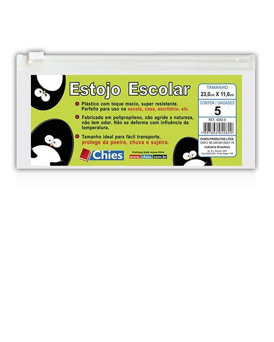 Envelope Plastico Cristal Ziper S/ Visor 11x23cm C/5 Chies 4082