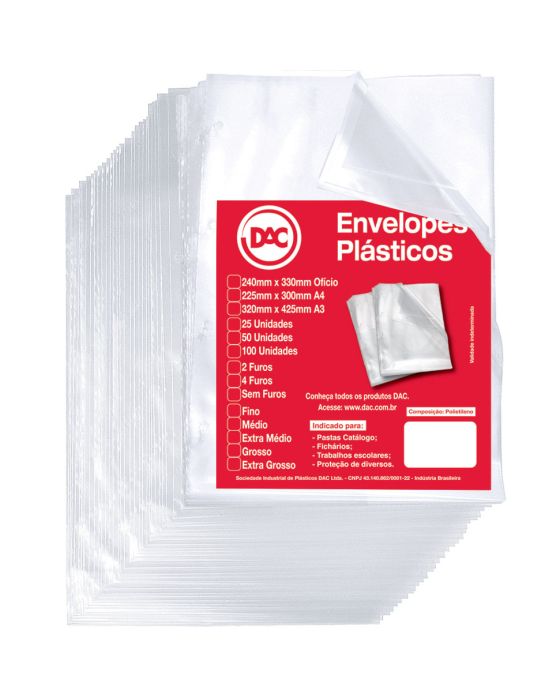 Envelope Plastico Oficio Extra Medio S/ Furo 12 Micras C/100 Ref 5177 Dac