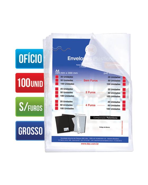 Envelope Plastico Oficio Grosso S/ Furo 15 Micras C/100 Ref 5075 Dac