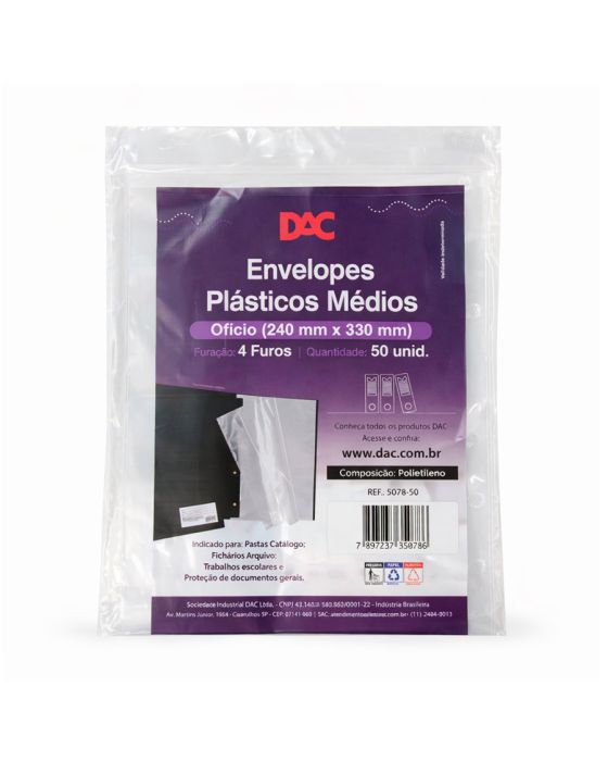 Envelope Plastico Oficio Medio C/ 4 Furos C/50 Ref 5870-50 Dac Ww