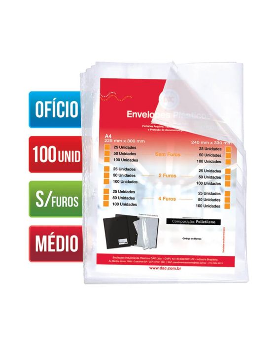 Envelope Plastico Oficio Medio S/ Furo 10 Micras C/100 Ref 5077 Dac