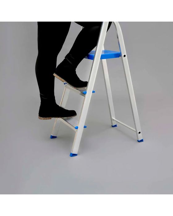 Características:Para realizar consertos rápidos em casa sem abrir mão da segurança, nada melhor do que ter uma escada que propicie firmeza no momento da utilização. Por isso a Mor elaborou para você uma linha de escadas completamente confiável, desenvolvidas com as melhores e mais seguras peças. Dobrável e fácil de guardar, a Escada de Alumínio 3 Degraus da Mor é ideal para pequenos consertos e para alcançar lugares mais elevados. Este modelo possui três degraus com estrutura e chapas em alumínio, material super leve, durável (mesmo em áreas litorâneas!) e com peças plásticas em polipropileno de alta resistência.Detalhes:- Modelo: Mor;- Referência: 005101;- Linha: Escadas;- Tipo: Padrão;- Cor: Prata/Azul;- Quantidade de degraus: 3 degraus;- Capacidade: 120kg;- Contém: 1 unidade do produto;- Maior durabilidade e estrutura esforçada;- Ocupa pouco espaço para armazenamento,- Degrau e pés antiderrapante;- Possui trava de segurança reforçada;- Com alça de transporte.Ideal para:- Ideal para escritórios, empresas e casas com o pé direito alto.Composição:- Fabricada em alumínio e polipropileno.Recomendações:- Não utilize a escada com calcados deslizantes;- Use a escada totalmente aberta e travada; - Observe o peso máximo suportado pela escada antes de subir com materiais;- Ao subir e descer a escada, fique sempre de frente aos degraus;- Tenha cautela ao utilizar o ultimo degrau, procurando apoiar-se bem;- Mantenha-se sempre no centro da escada, evitando movimentos bruscos;- Não use em pisos escorregadio ou irregular;- Não suba ou desça a escada com objetos na mão;Medidas:- Dimensões do produto: 56 x 39 x 1,12cm (CxLxA);- Peso: 2,14kg.*Registro NMETRO N° 219.* Os objetos que ambientam as imagens não acompanham o produto!Conteúdo da embalagem: 1 Escada 005101 Mor.Garantia do fornecedor: 3 anos contra defeitos de fabricação.* As especificações podem ser alteradas sem aviso prévio ** Imagem meramente ilustrativa.