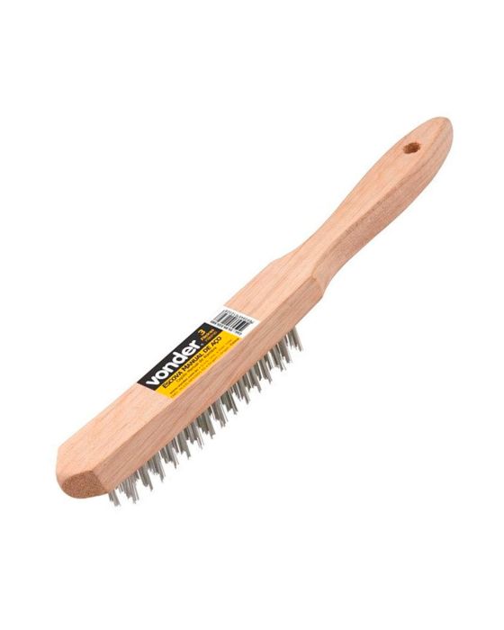 Características:- Maior poder de remoção- Indicada para limpeza de peças em geral- Material/acabamento das cerdas da escova: Aço carbono/polido- Material do cabo da escova: Madeira- Fileiras de cerdas: 3- Dimensões (CxLxA): 29 x 2 x 4cm- Peso: 72g * As especificações podem ser alteradas sem aviso prévio ** Imagem meramente ilustrativa