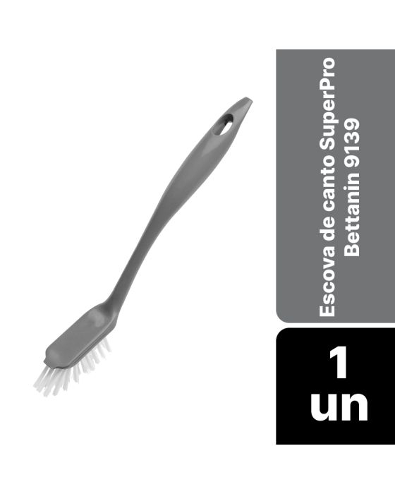 Características:Limpar os cantinhos do chão ou das paredes será mais fácil com a Escova de Canto SuperPro 9139 Bettanin!Design ergonômico, auxiliando nas limpezas mais pesadas e difíceis, são eficientes para superfícies irregulares, rústicos, cantos e com superfícies que possuem um grau de sujidade elevado, podendo ser usado em limpeza de sanitários, botas e equipamentos de trabalho.Detalhes:- Marca: SuperPro;- Fabricante: Bettanin;- Modelo: Escova para Azulejos e Cantinhos;- Referência: 9139;- Linha: Escovas;- Cor: Cinza;- Contém: 1 unidade do produto;- Design ergonômico.Ideal para:- Limpeza de rejuntes, cantos, locais com difícil acesso.Composição:- Fabricado em Polipropileno, Material sintético e pigmento.Medidas:- Dimensões do produto: 27 x 5 x 2,4cm (CxLxA);- Peso: 420g.* As especificações podem ser alteradas sem aviso prévio ** Imagem meramente ilustrativa.