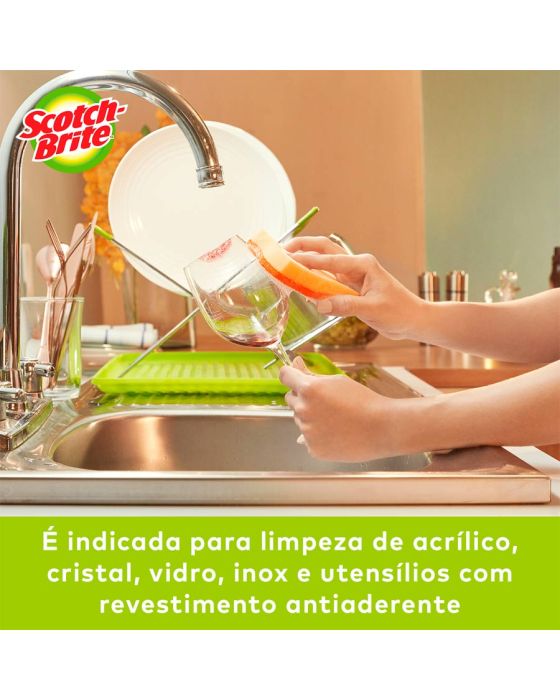Características:A Esponja Não Risca Scotch-Brite® limpa de forma suave sem riscar as peças mesmo nas superfícies mais delicadas. É indicada para limpeza de acrílico, cristal, vidro, inox e utensílios com revestimento antiaderente, sendo suaves com as superfícies, mas firmes na remoção das sujeiras.Para remoção de sujeiras de forma fácil e sem arranhões. Com esta esponja laranja, você pode utilizar a parte mais escura do produto que mesmo assim não riscará as peças, inclusive as peças de acrílico e cristal. Com novo formato e maior maciez, ela proporciona melhor ergonomia na hora de lavar. O tamanho maior dessa esponja macia é ideal para uso em janelas, azulejos e bancadas, além de também ser ótimo para porcelanas e cristais.Detalhes:- Marca: Scotch-Brite®;- Fabricante: 3M®;- Modelo: Esponja Scotch-Brite® Não Risca;- Referência: HB004305676;- Linha: Esponjas;- Cor: Laranja;- Uso: Cozinha;- Contém: 1 embalagem do produto com 1 unidade;- Garante limpeza suave, sem riscos ou arranhões*;- Possui formato diferenciado para melhor ergonomia na hora de lavar;- Fácil de segurar e de ser utilizada;- Pode ser higienizada em microondas ou com água fervente**;- A verdadeira esponja que não risca;Ideal para:- Ideal para: Antiaderente, Vidros, Acrílico, Cristal, Inox, Cooktops, Bancadas, Azulejos, Louças e Janelas.Aplicações sugeridas:- Indicada para limpeza de louças, utensílios domésticos e metais sanitários sem provocar riscos profundos.Conteúdo da embalagem: 1 Esponja Multiuso Scotch Brite Nao Risca Laranja 3m.*Indicada para as superfícies delicadas como aço inox polido e escovado, antiaderente, vidro, cerâmica e cristal. Devido à existência de diferentes qualidades de revestimentos e materiais, recomenda-se testar o produto em uma parte escondida do material antes de usá-lo definitivamente, a fim de evitar riscos indesejáveis. Informações de acordo com testes realizados em laboratório externo nos períodos de junho/19 a setembro/19.** Informações de acordo com testes realizados em laboratório externo no período de maio/19.* As especificações podem ser alteradas sem aviso prévio ** Imagem meramente ilustrativa.