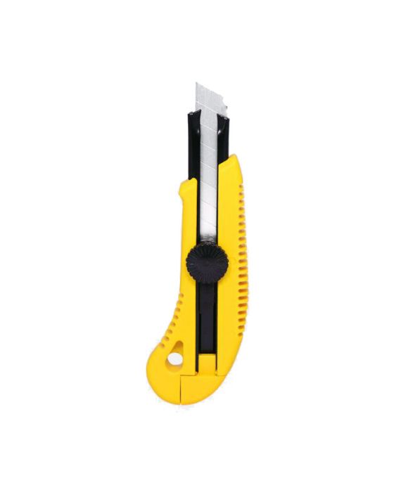 Caracteristícas:O Estilete Profissional Norma L550 possui estrutura reforçada em termoplástico e lâmina de aço carbono 18mm, com dupla afiação, o que garante maior precisão ao cortar. Possui também um mecanismo de fixação da lâmina, com travatipo roldana e guia da lâmina em aço carbono. Use esse estilete profissional para trabalhos pesados, em materiais como borracha, carpete, couro, filme laminado e piso vinílico. É indicado para a indústria. - Fabricado com corpo em termoplástico e guia da lâmina em aço carbono, pintura a pó na cor característica do produto amarelo com detalhes pretos, trava e suporte com roldana- Com lâmina de 18 mm- Indicado para cortes em couro, filmes metálicos, borrachas, para serviços mais pesados.* As especificações podem ser alteradas sem aviso prévio ** Imagem meramente ilustrativa