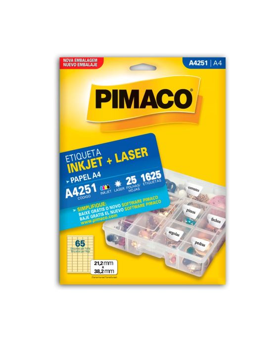 Etiqueta Adesiva Laser/jet A4 251 21,2x38,2 Cx C/25f Pimaco
