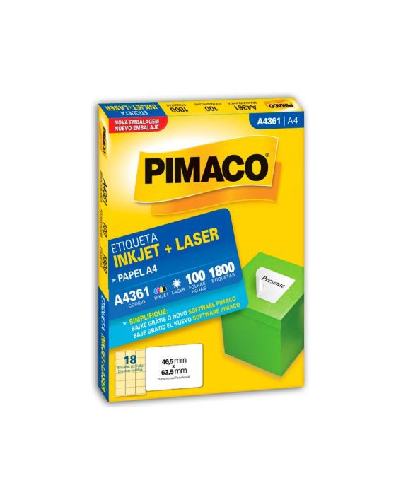 Etiqueta Adesiva Laser/jet A4 361 46,5x63,5 Cx C/100f Pimaco